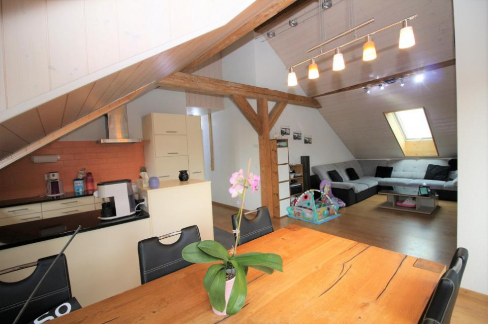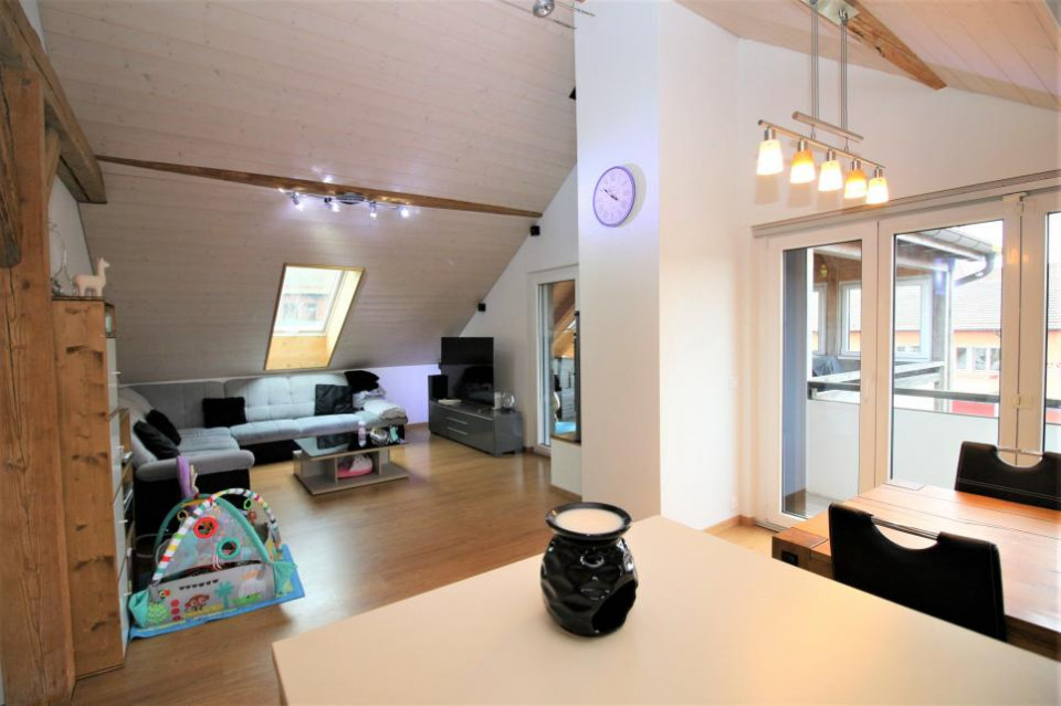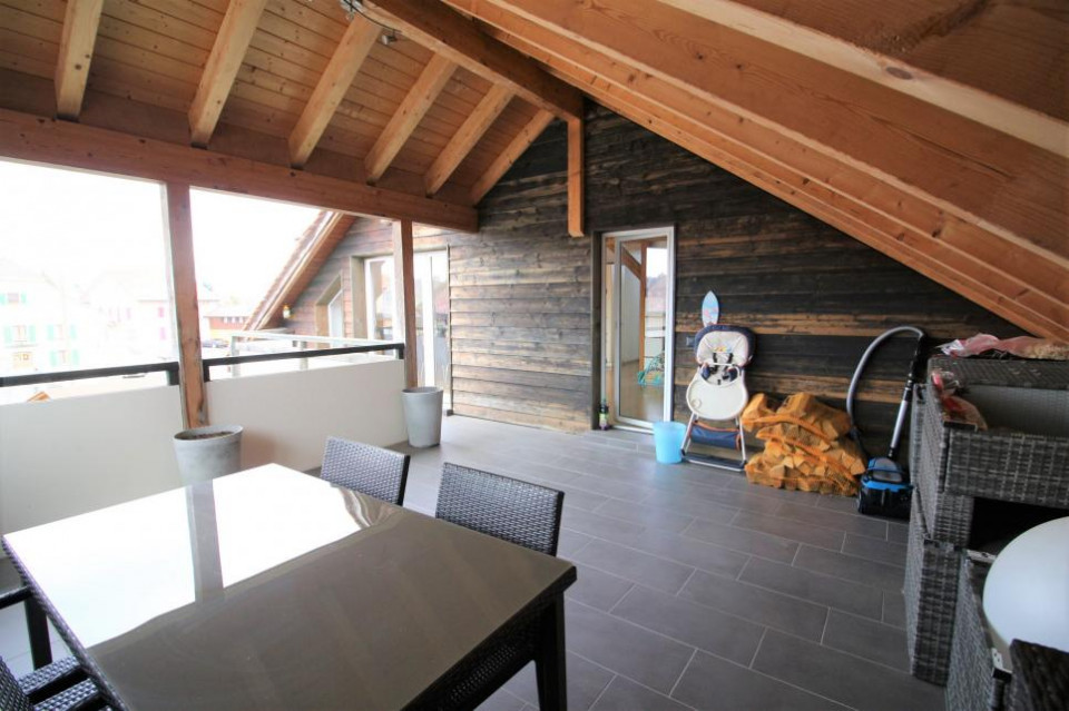 Au coeur du charmant village de Poliez-le-Grand, proche de toutes les commodités, ce joli 3.5 pièces en attique avec terrasse se compose ainsi :